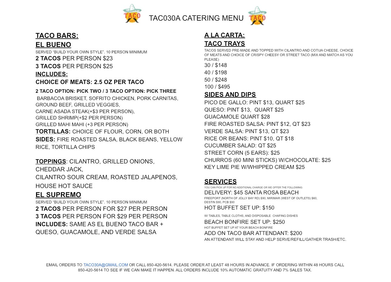 Let us take care of the food, great for groups of any size! Taco Bars and Buffets for birthdays, celebrations, weddings, luncheons, and special events. We'll come to your home, venue, or beach setup! For pickup or delivery, groups large or small – we do it all. Let’s have a good time with some good food!